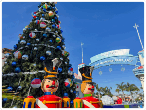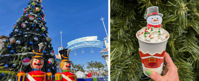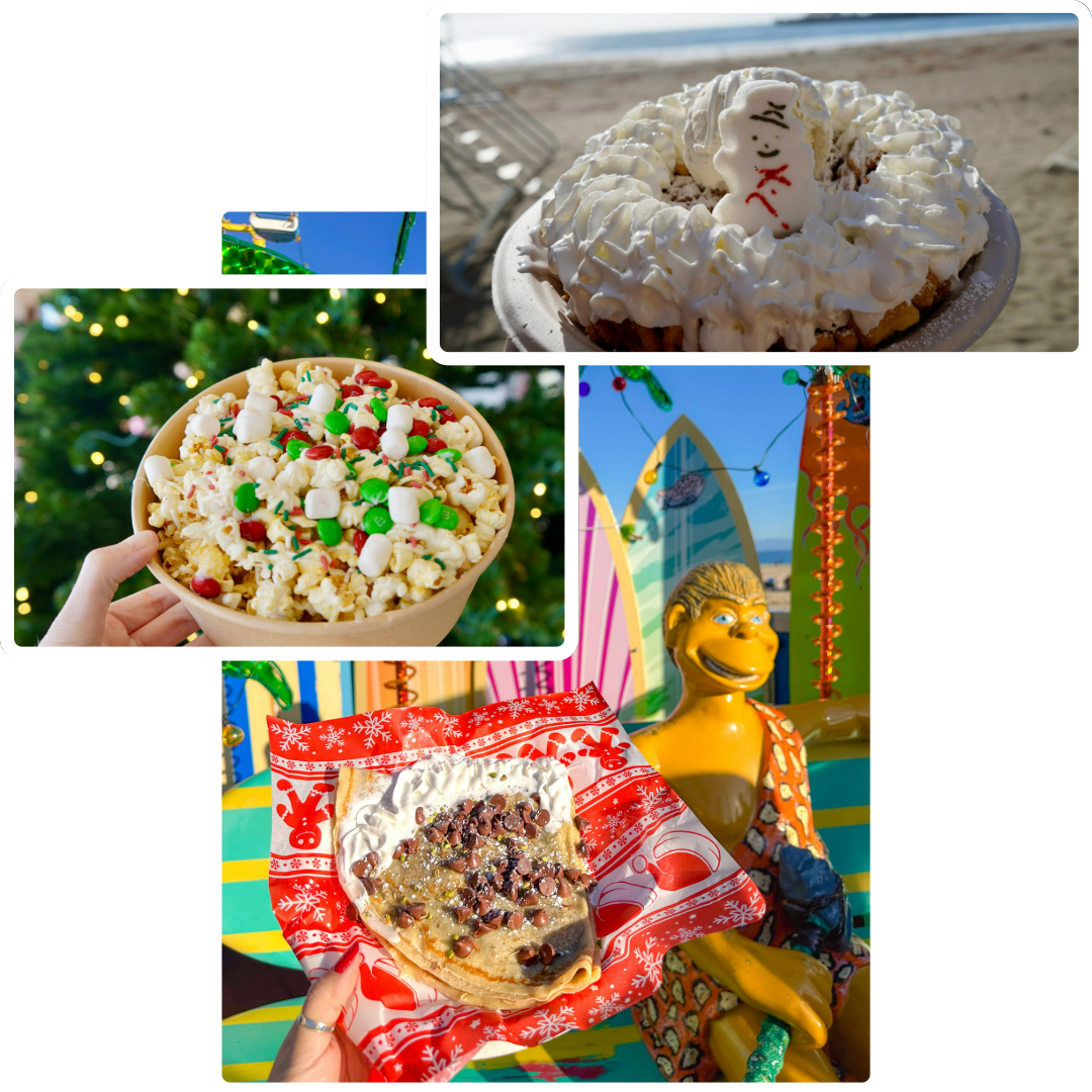 Warm up by the fire pits with a gooey s’mores kit while sipping on your favorite festive hot drinks from Cafe Espresso at Boardwalk Grille. Think peppermint mochas, loaded hot chocolate, eggnog lattes, and more! Pair your Gingerbread Mocha with a Gingerbread Churro from Churros for that holiday spice we all know and love. Or… Embrace the cold at Carousel Cones with Peppermint Soft Serve and a Santa approved Sandae featuring crushed peppermint, marshmallow creme, and holiday sprinkles. For our Grinchloving guests, sip on The Merry Cranberry—cranberry juice mixed to perfection with lemonade, or The Green One—a blend of pineapple, green apple, and a splash of Sprite, all served in a cute Grinch cup at Boardwalk Grille.